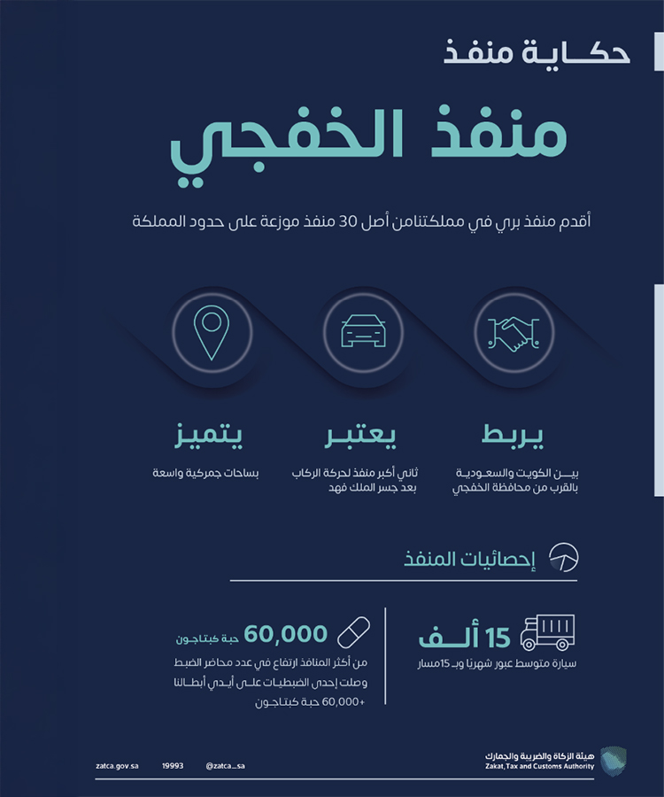 The Zakat, Tax, and Customs Authority operates with high efficiency in collecting zakat, taxes, and customs duties, aiming to enhance the Kingdom's position as a global logistics hub. The Authority also oversees and manages all customs activities to achieve the highest levels of efficiency and competitiveness, while providing high-quality services focused on customer satisfaction.